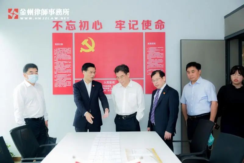 范運田廳長一行在金州所創始合伙人楊建偉的陪同下,實地參觀了金州所“不忘初心、牢記使命”主題教育宣傳欄、黨建文化墻和辦公場所。