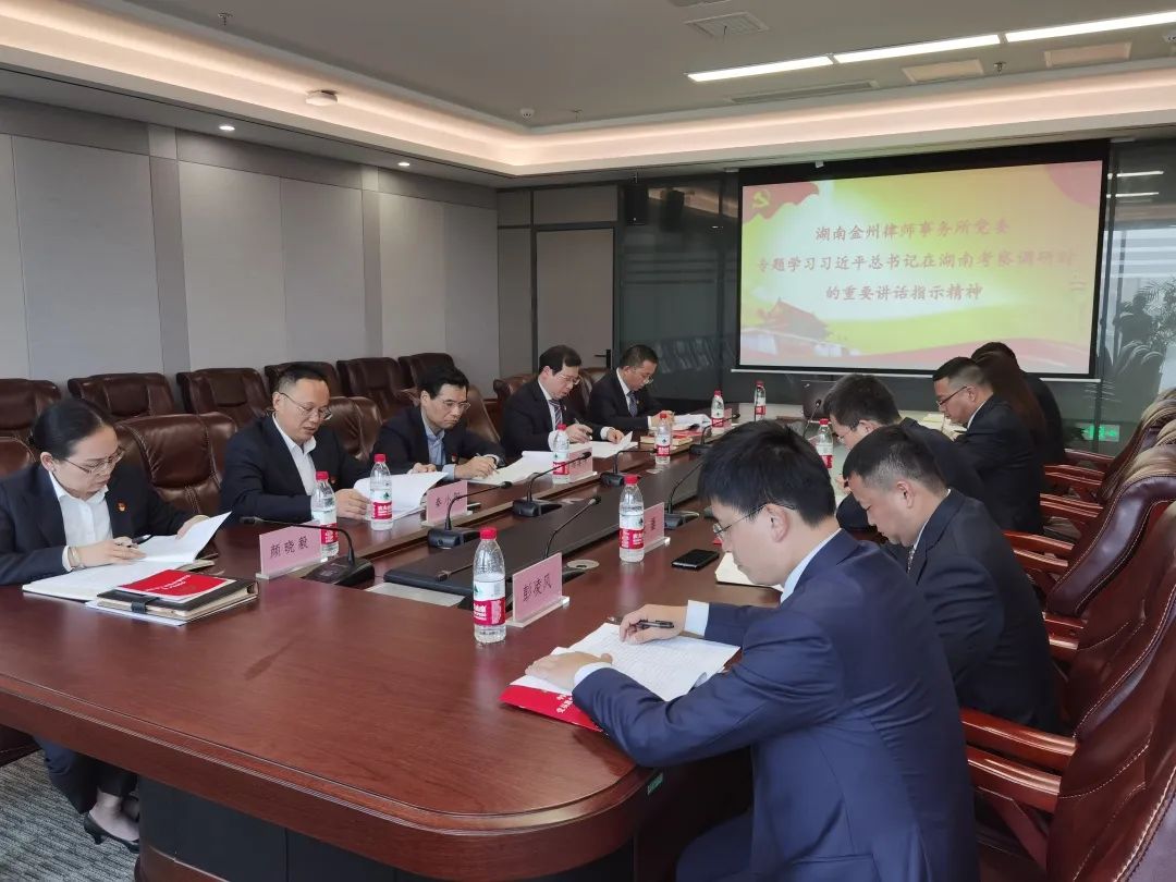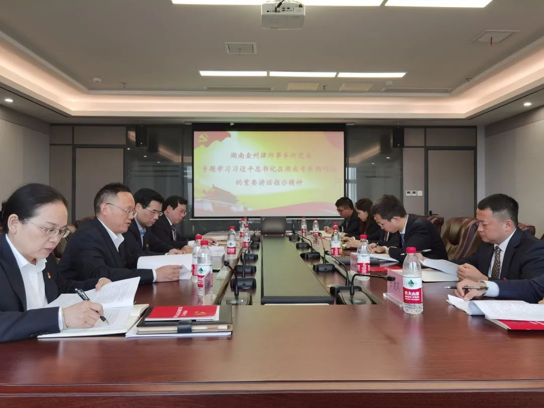 會上,黨委組織委員、創始合伙人楊建偉暢談了學習心得體會。他說,金州所黨委及各支部要深入學習貫徹好習近平總書記在湖南考察調研時的重要講話指示精神,要圍繞習近平總書記賦予湖南的新定位新目標,不斷強化黨建引領。在全面依法治國的新形勢下,律師的作用與職能更加突顯,作為新時代的金州律師,要講政治、講紀律、講素質,以良好的政治素養和業務素質為人民群眾提供優質和精準的法律服務。
