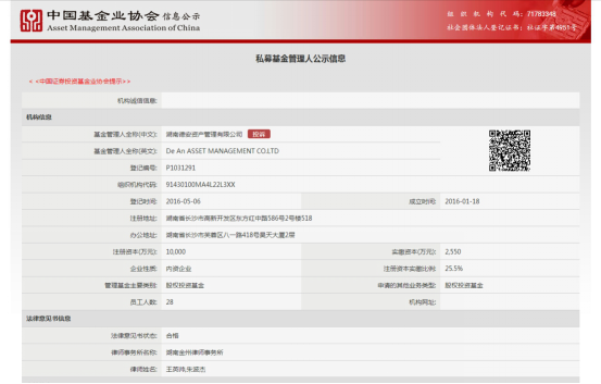 2016年5月6日,湖南德安資產管理有限公司的私募基金管理人登記申請通過中國證券投資基金業協會的備案審查,湖南金州律師事務所為其登記申請提供專項法律服務。根據目前中國證券投資基金業協會網站的公示情況,該公司是備案新規實施后,湖南省首家通過協會備案登記的新增私募基金管理人。