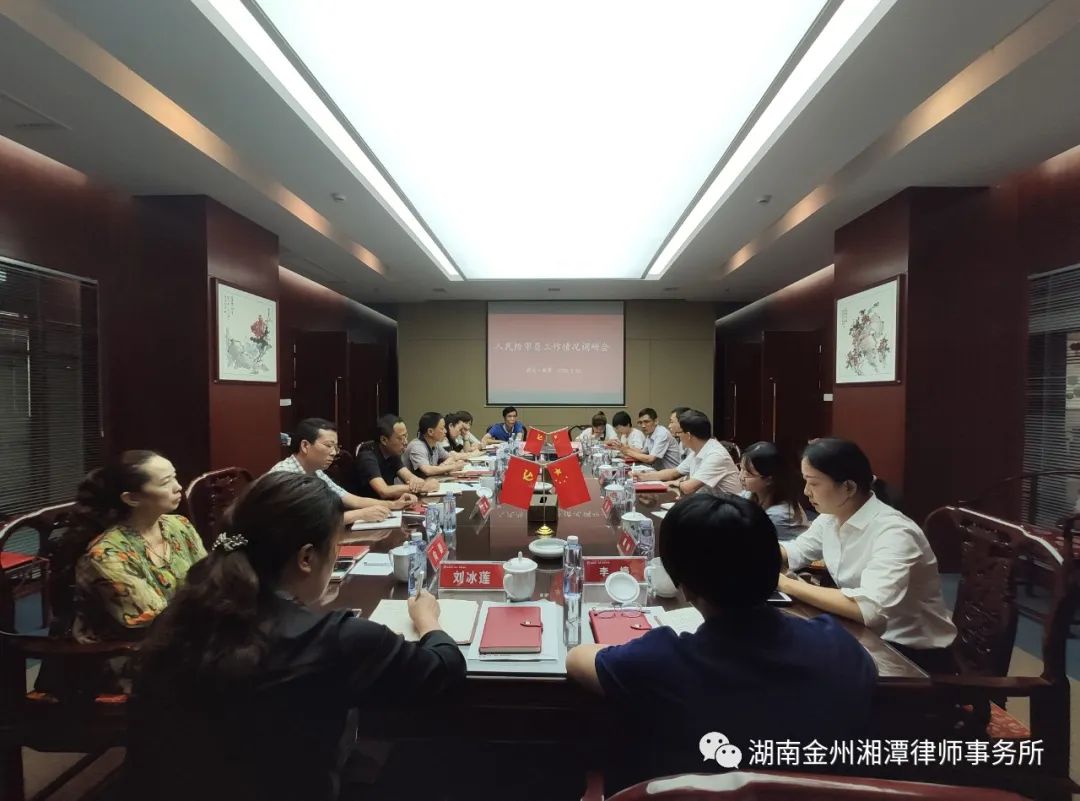 2020年7月16日,湘潭市人大監察和司法委員會曹海平主任率市人大監察和司法委員會調研組一行來到湖南金州(湘潭)所就我市人民陪審員工作情況、《人民陪審員法》在我市的貫徹實施情況以及在工作過程中存在的困難、問題及建議進行調研。