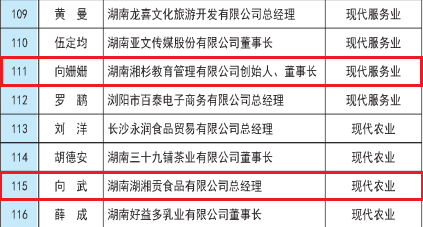 由我所顏峰、周園律師團隊提供常年法律顧問服務的湖南湖湘貢食品有限公司總經理向武,湖南湘衫教育管理有限公司創始人、董事長向珊珊被確定為首批入圍人選。